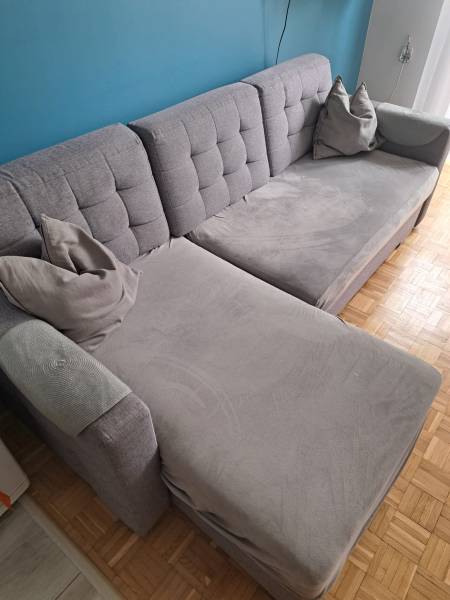 Mam do sprzedania rogówkę, która świetnie sprawdzi się w salonie, pokoju dziennym lub gościnnym. Mebel posiada parę plam więc jest do wyczyszczenia w bardzo dobrym stanie technicznym. W jednym miejscu puściła szwa(widoczne na zdjęciach)szczegółowe wymiary również w zdjeciach