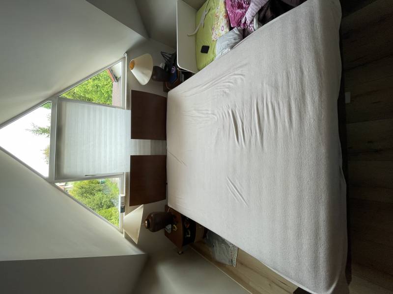 Spore łóżko dla dwojga. Łóżko używane w bardzo dobrym stanie. W zestawie materac. Pod łóżkiem znajduje się spora skrytka na dodatkowy komplet pościeli lub inne rzeczy. Skrytka otwierana w prosty sposób, nie potrzeba do tego sporo siły. Za zagłówkiem znajduje się lampka idealna dla tych którzy lubią czytać przed spaniem. Wymiary łóżka to 2050x1850x580. Wysokość razem z materacem.
