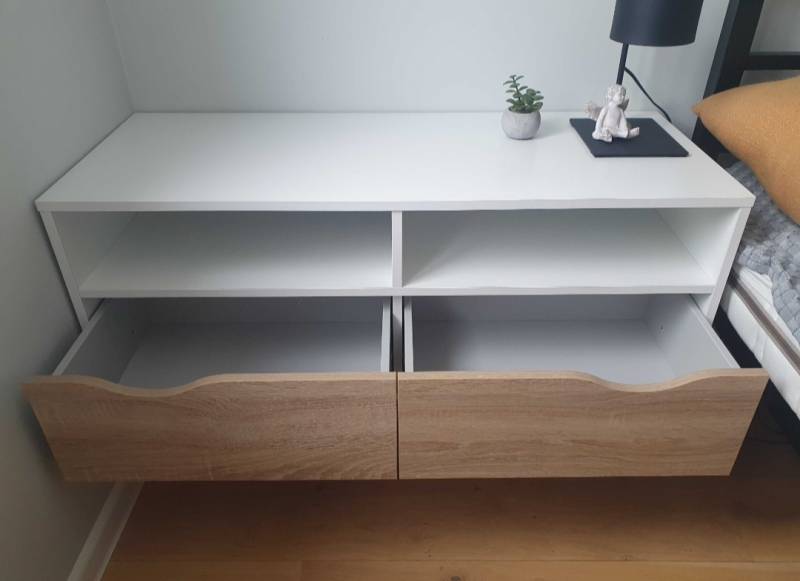 Szafki mogą służyć zarówno jako szafki RTV jak i większe szafki nocne w sypialni.