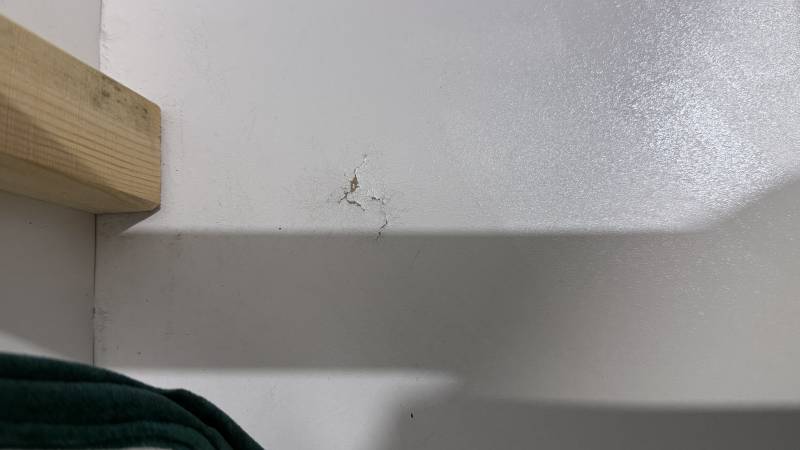 Z zewnątrz ma tylko jedną pęknięta nitkę, w pojemnikach na pościel lekkie wgłebienie i plamki.
