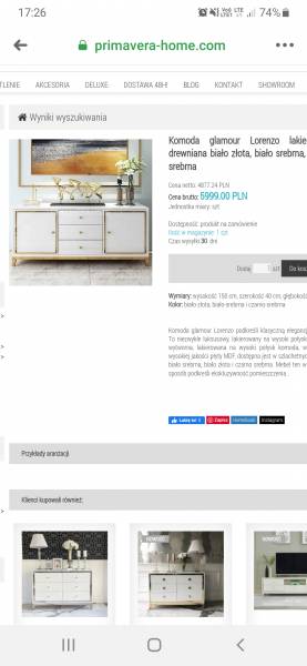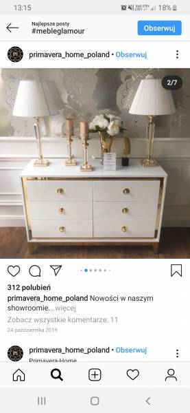 Na sprzedaż piękne lakierowane komody z dodatkami w kolorze złota oraz stół ze spieku o marmurowym wzorze.