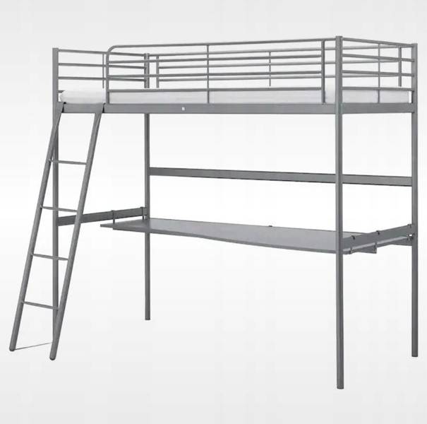 Łóżko piętrowe metalowe z biurkiem.