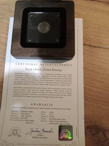 Obie monety pakowane w kapsel plastikowy ,pudełko drewniane oraz posiadają certyfikat autentyczności .