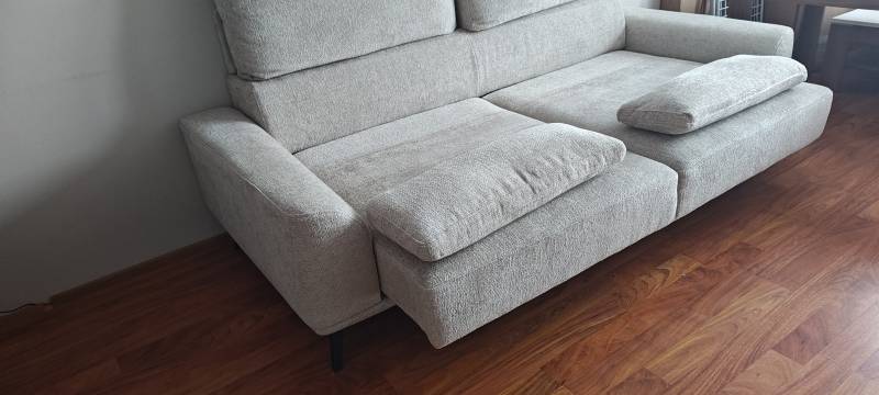 Mam do sprzedania komfortową sofę 3 osobową Misty z podnoszonym oparciem i elektrycznie wysuwanym siedziskiem w kolorze beżowym o wymiarach; szerokość 248cm, głębokość 113cm, wysokość 79-120cm, wysokość siedziska 44,5cm, powierzchnia spania 102cm. Sofa jest w bardzo dobrym stanie. Kupiona w grudniu 2024r. Używana przez 3 miesiące w domu gdzie nie było palone i był tylko kot. Odbiór osobisty po ustaleniu telefonicznym.