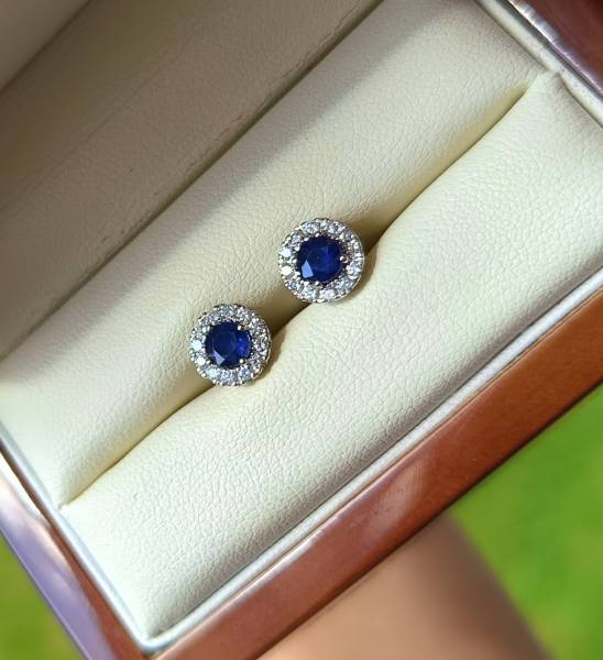 Sprzedam kolczyki z białego złota z szafirami i diamentami