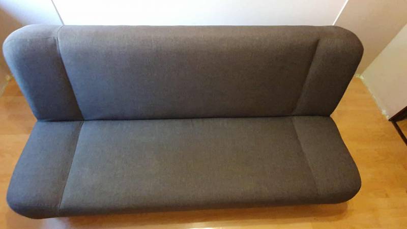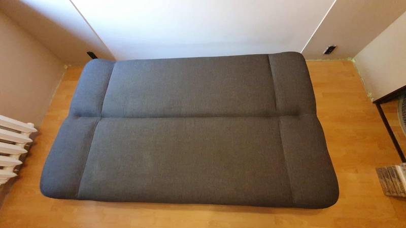 szara kanapa rozkładana o wymiarach 120x190cm