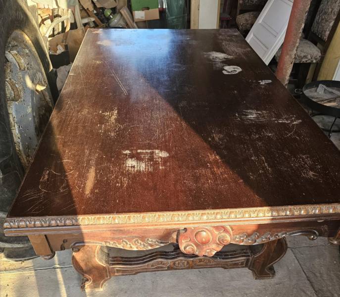 Sprzedam stół z 6 krzesłami – stylowe, rzeźbione meble do renowacji, antyk/vintage