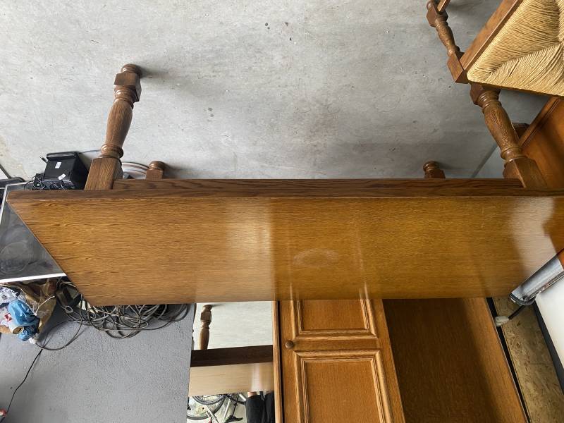 Sprzedam dużo ładnych mebli , kredens dębowy , komodę rzeźbioną dębową , 3 stoły , jeden śliczny duży dębowy , wszystkie stoły posiadają komplet krzeseł ,witrynę , szafę z lustrem w środku i wieszakami