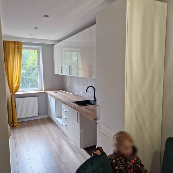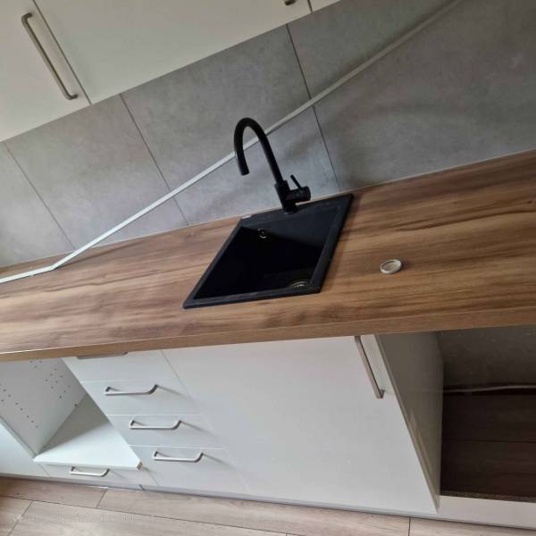 Posiadam 1 kuchnię w bardzo dobrym stanie – została zamontowana, ale nigdy nie była używana (część półek wciąż czeka na montaż).