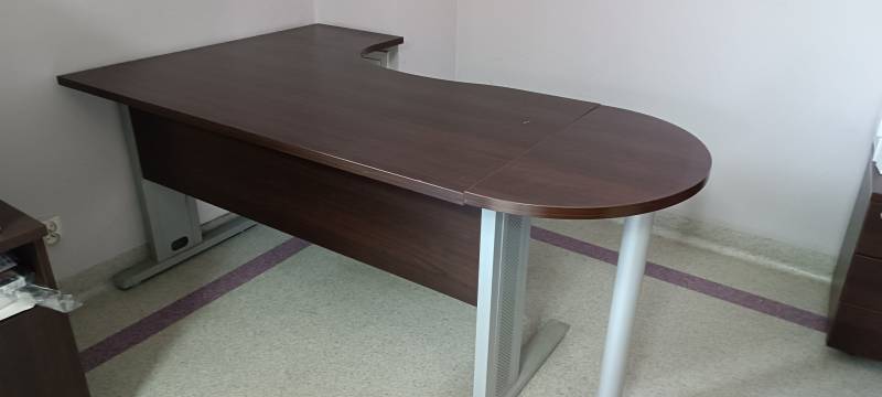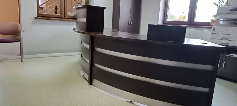 Meble biurowe w postaci połączonych biurek oraz wolnostojącego biurka narożnego zakupione w salonie ELZAP. Połączony zestaw można rozłączyć i wtedy mamy 3 odrębne stanowiska pracy. Mebel wykonany z wysokiej jakości materiałów, z charakterystycznym wzorem na frontach. Biurko będzie dobrym wyborem do urządzenia nowoczesnego, profesjonalnego miejsca pracy. Ponadto posiadam też na sprzedaż 2 biurka managerskie w tym samym kolorze wraz z kontenerkami na kółkach, szafę widoczną na zdjęciu oraz bardzo dużą komodę również zakupione w salonie ELZAP - zainteresowanym mogę przesłać zdjęcia. Meble w stanie bardzo dobrym/idealnym, jedynie na narożnym biurku jest uszkodzona powierzchnia (ok 2-3cm wgłębienie widoczne na zdjęciu). Można zakupić cały komplet albo pojedyncze sztuki.