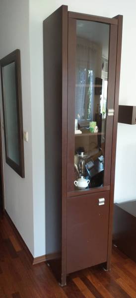 - witryna wisząca na ścianie drzwi otwierane do góry w środku 2 półki, szerokość 78 cm, wysokość 28cm, głębokość 39 cm ,
