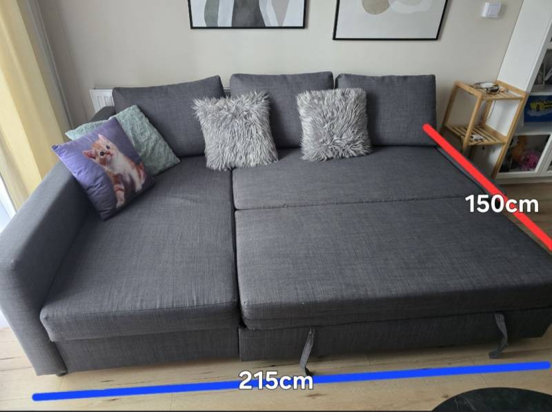 Na sprzedaż posiadam narożnik koloru szarego rozkładany z miejscem na chowanie pościeli wymiary :