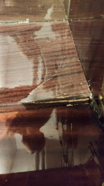 Wymagają renowacji tj. lakierowania, naprawienia zawiasów. Szuflady w jednej części nie wysuwają się do końca - znam przyczyny (nie są zniszczone). Widoczne uszkodzenia mam na zdjęciach. Niestety tutaj limitowana ilość zdjęć nie pozwala na załączenie.