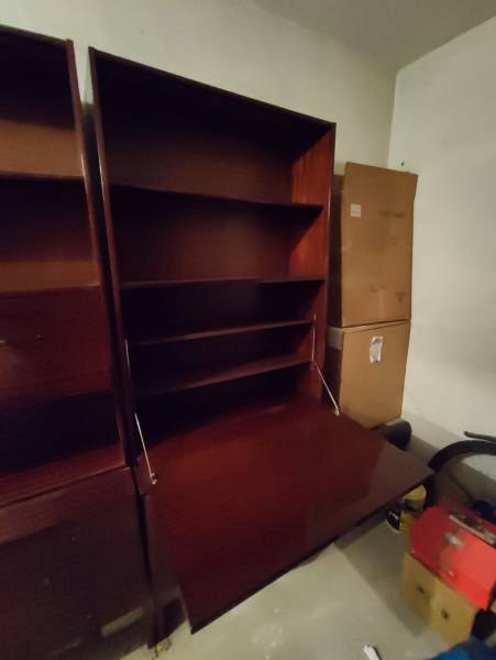 Meble pokojowe, pięć części segmentu. Kolor ciemny brąz, błysk. Stoją na nóżkach.
