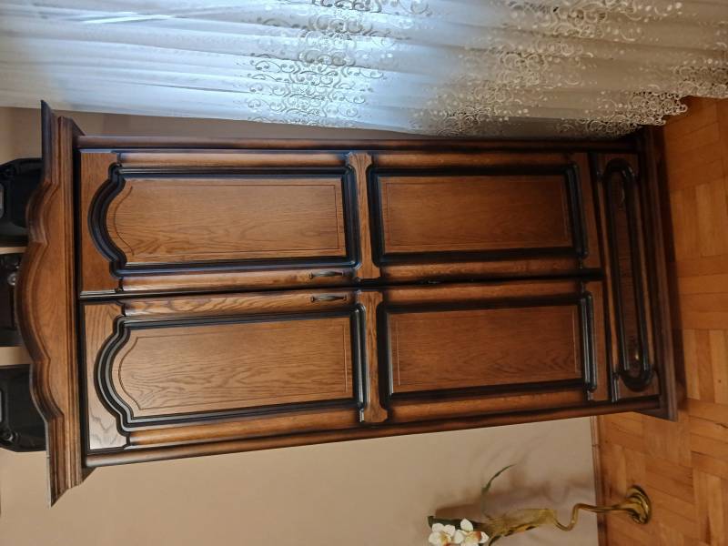 Mam do sprzedania komplet mebli pokojowych - salonowych tj. komoda, witryna narożna oszklona, szafa, stolik narożny pod telewizor, ława ze szkłem, stolik mały ze szkłem. Meble są drewniane z lekkimi uszkodzeniami jest witryna, stolik pod telewizor, ława i mały stolik ale poza tym są w dobrym stanie. Mocne solidne meble. Bardzo ciężki.