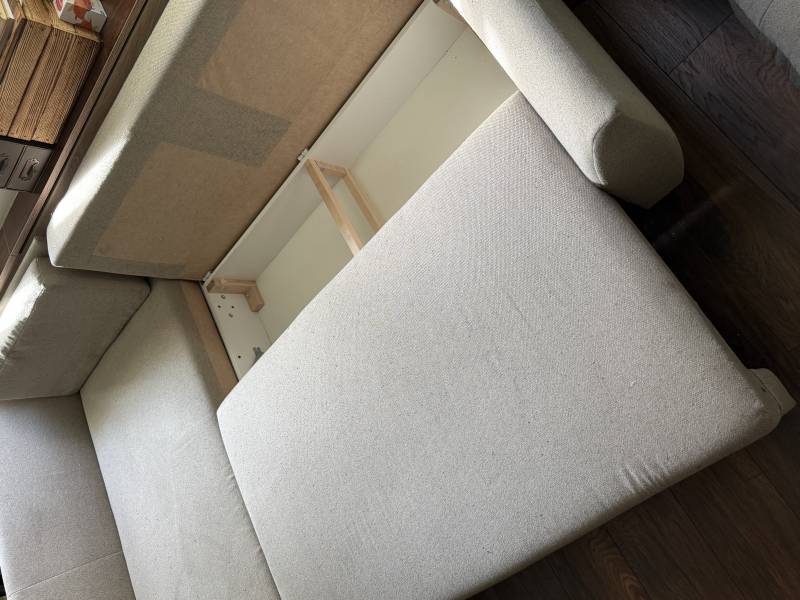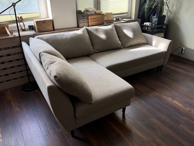 Wygodny narożnik z funkcją spania oraz pojemnikiem na pościel lub koce. Nieuszkodzony. Ogłoszenie będzie ważne przez tydzień.