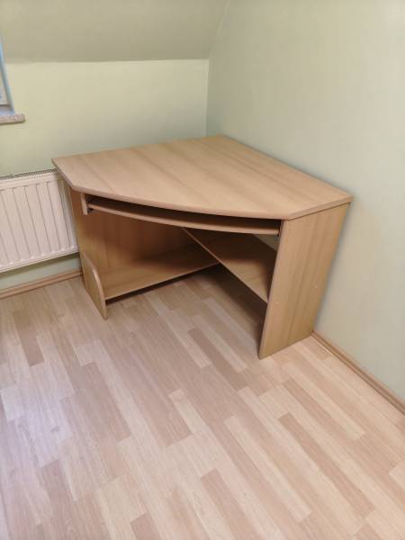 Sprzedam meble pokojowe biurko narożnikowe, szafę, biblioteczkę, regał, kredens io szafkę pod tv w kolorze jasnego drewna z normalnymi śladami użytkowania- niezniszczone. Odbiór we własnym zakresie kupujacego.