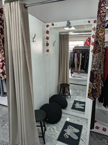 14 półek, 2 lustra, przymierzalnia, "lada"