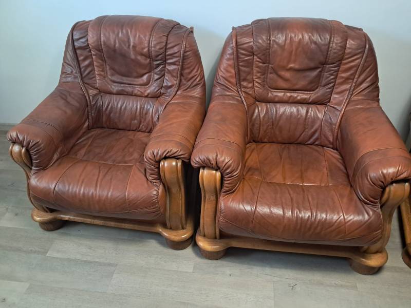 Komplet skórzany kanapa plus dwa fotele