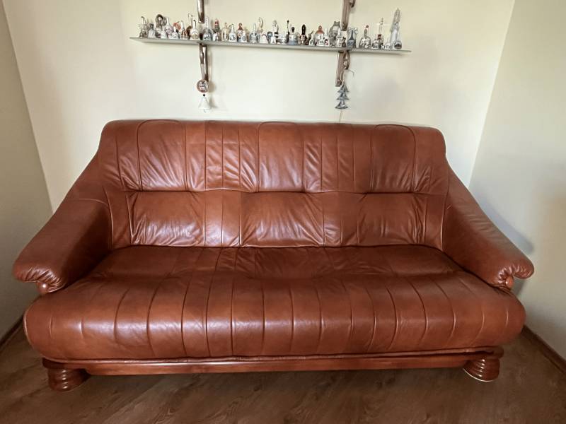 Kanapa + 2 fotele ze skóry, ława