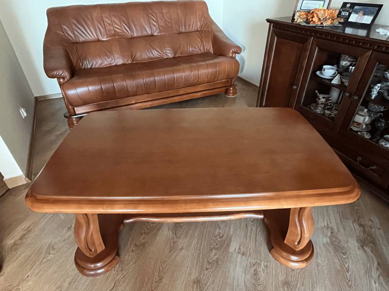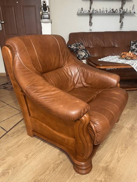 sprzedam kanapę i 2 fotele ze skóry oraz ławę - w komplecie, wykonane w Swarzędzu. meble noszą ślady uytkowania