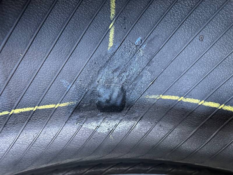 Jedna opona była naprawiana w czole bieżnika – naprawa wykonana profesjonalnie, opona sprawna i bezpieczna.