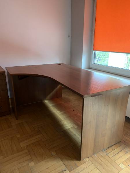 2 biurka narożne - do ustawienia na przeciwko siebie - łącznik biurek zaokrąglony (66x110cm najdłuższe boki plus szerokość łącznika 46 cm)