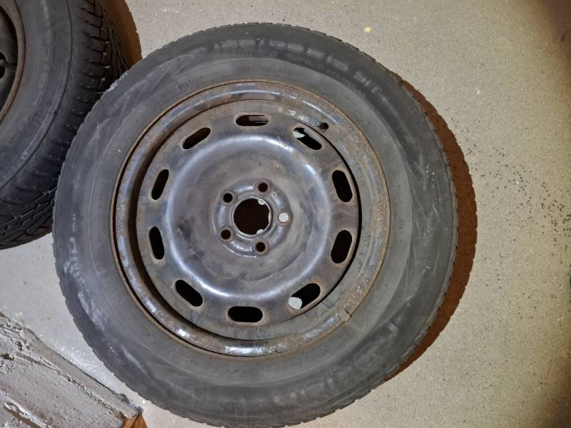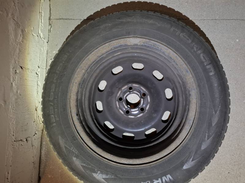 Zimowe opony Nokian WD4 na stalowych felgach ET38 6Jx15H2 1J0.601.027Q. Produkcja 33 tydzień 2016. Bieżnik 5-6mm.