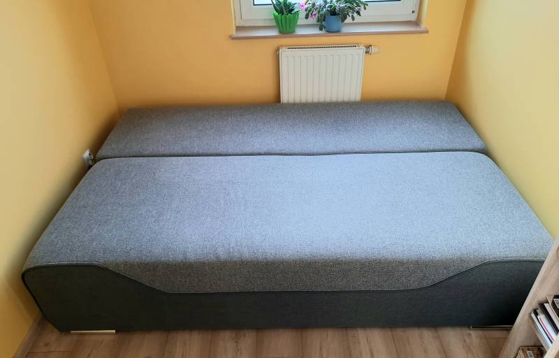 • Sofa z funkcją spania i pojemnikiem na pościel.