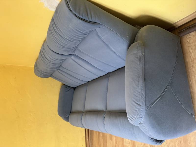Sofa w kolorze niebiesko-szarym, używana, w stanie bardzo dobrym/dobrym z funkcją spania
