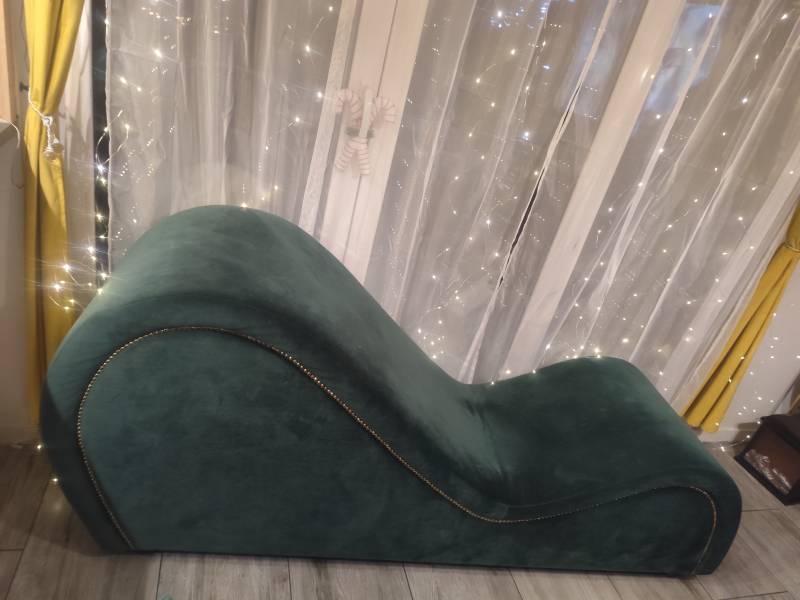 Mam na sprzedaż szezlong w kolorze butelkowej zieleni.