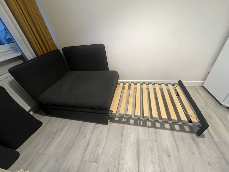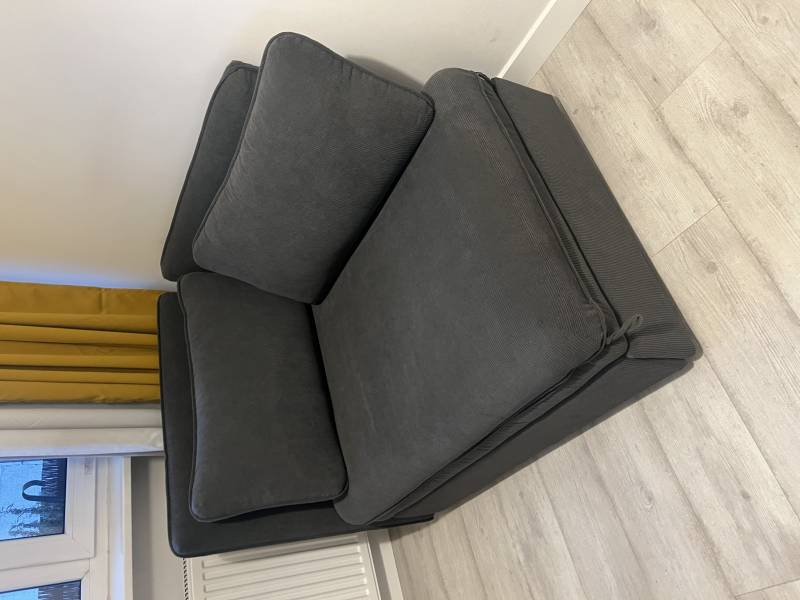 Sofa jednoosobowa z funkcją spania Ikea Vallentuna. Antracytowa sztruksowa sofa z funkcją spania dla jednej osoby. PUżywana bardzo sporadycznie. W stanie idealnym, bez zabrudzeń, bez wgnieceń i „wysiedzianej” pianki. W komplecie dwie poduchy.