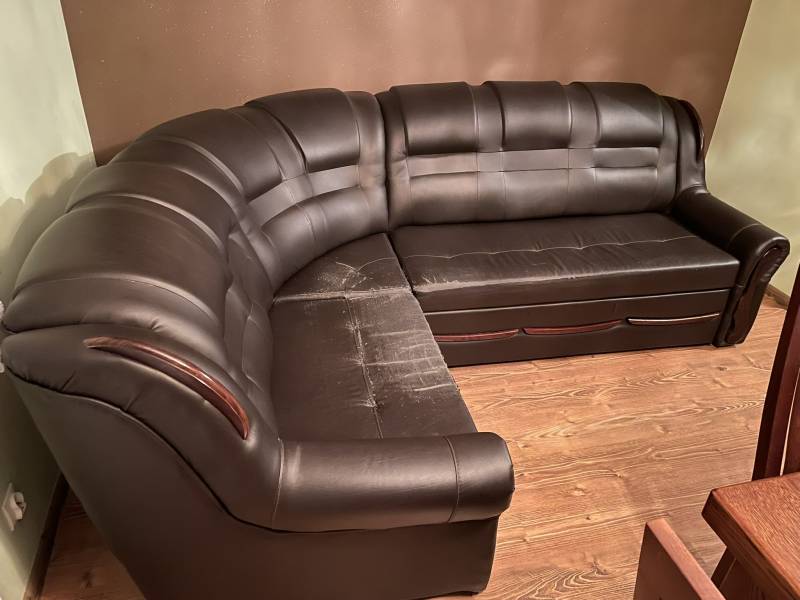 Mebel używany, wymaga renowacji tapicerki lub użytkowania z narzutą.