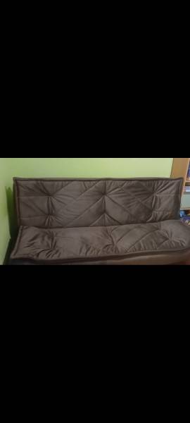 Kanapa wersalka rozkładana niestety przez to że ma lekkie podwyższenie z jednej strony nadaje się bardziej do siedzenie ponieważ po rozłożeniu daje takie sytuacje że jak dziecko się położy to czasem sturla się ze swojej połowy. Ogólnie nie narzekam ładna w modnym teraz kolorze brązie,jest z dodatkowym przeszyciem co ma dekoracyjne pikowanie które można odpiąć i wyprać.