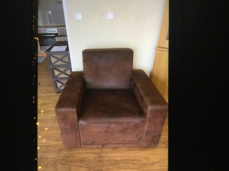 Kanapa / sofa Rogowa z funkcją spania + fotel-kolor czekolada faktura (przycieramy zamsz).eleganckie przeszycia(stebnówka) w kolorze beżowym.możliwość prania obicia.