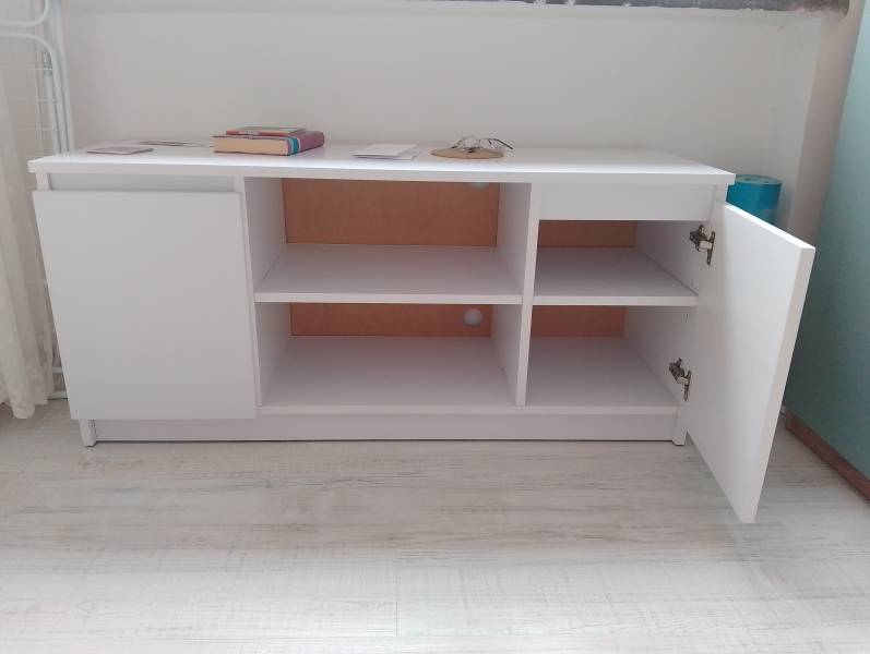 Szafka w kolorze białym. Wymiary: długość -120, wysokość -55, głębokość -40.
